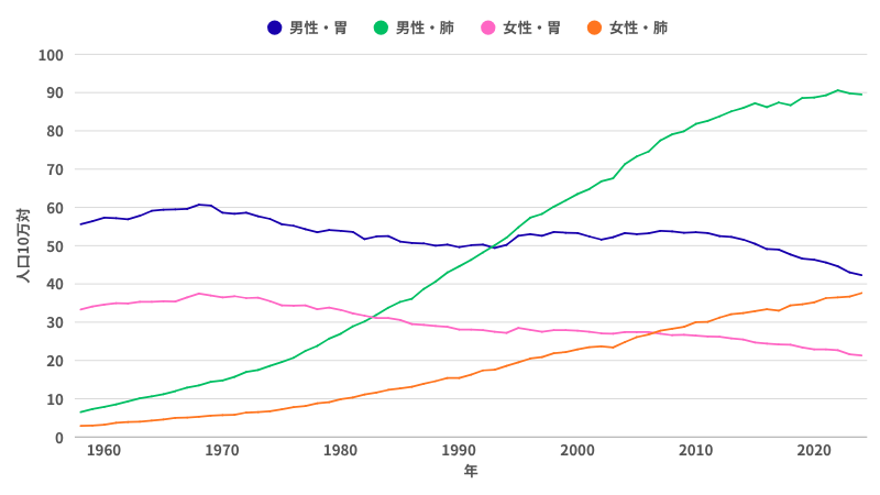 ただ、近年は非喫煙者の肺がんが増えており、女性の肺がん患者の約75%は喫煙歴がなかったというデータも報告されています[※3]。「タバコを吸っていないから大丈夫」「女性だから大丈夫」と思わず、どんな人でも40歳を過ぎたら定期的に肺がん検診を受けることが大切です。