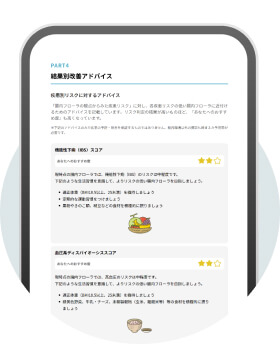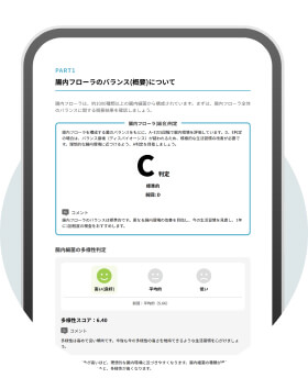 構成する菌のバランスをもとに腸内環境を評価。大腸画像検査の必要性や長寿菌の状況などを総括的にお伝えします。