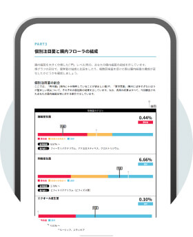 皆様の腸内細菌の割合を数値化。善玉菌・悪玉菌のバランスなどを分かりやすくお伝えします。