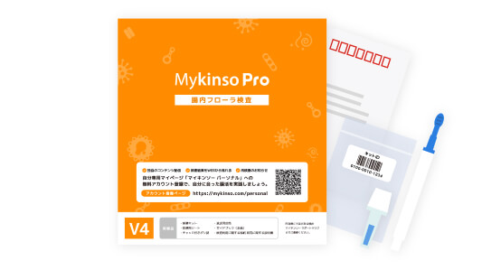 | 商品名 | Mykinso Gut(マイキンソーガット)V4 ※検査キット「Mykinso Gut V4」(旧商品名:Mykinso Pro)は株式会社サイキンソーの商品です。 |